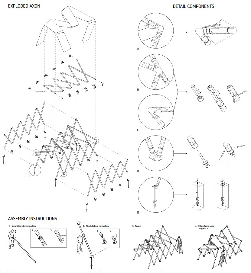 The Bamboo project used unprocessed, natural bamboo culms, a material with both cultural resonance and environmental function, as its main structure. These culms were design to be assembled into a diagrid using custom, 3-d printed joints at the structure’s base and top. The project explored the potential of rapid-prototyped, 3-D printed architectural elements to facilitate the use of natural materials with high carbon sequestration capacity.