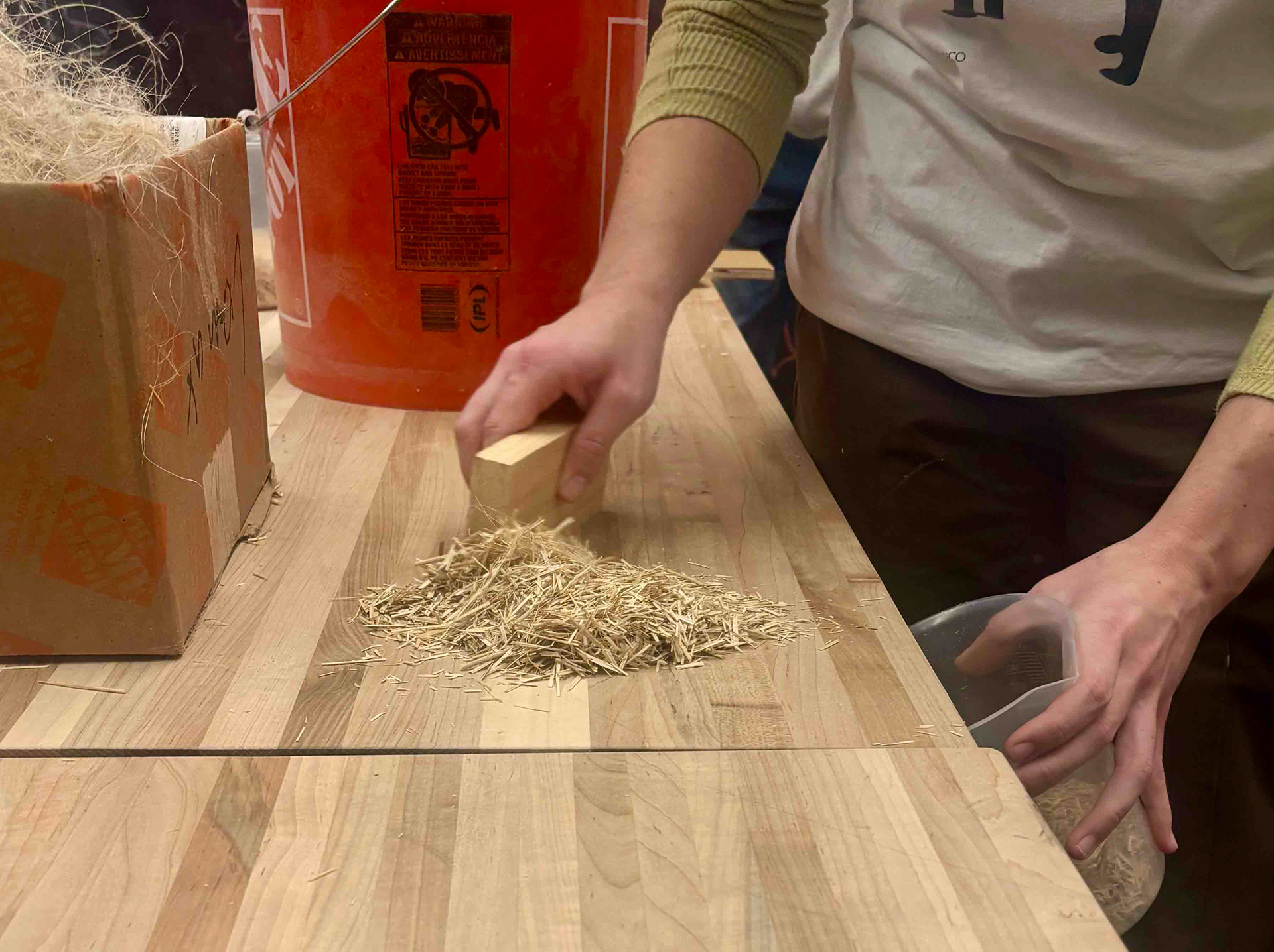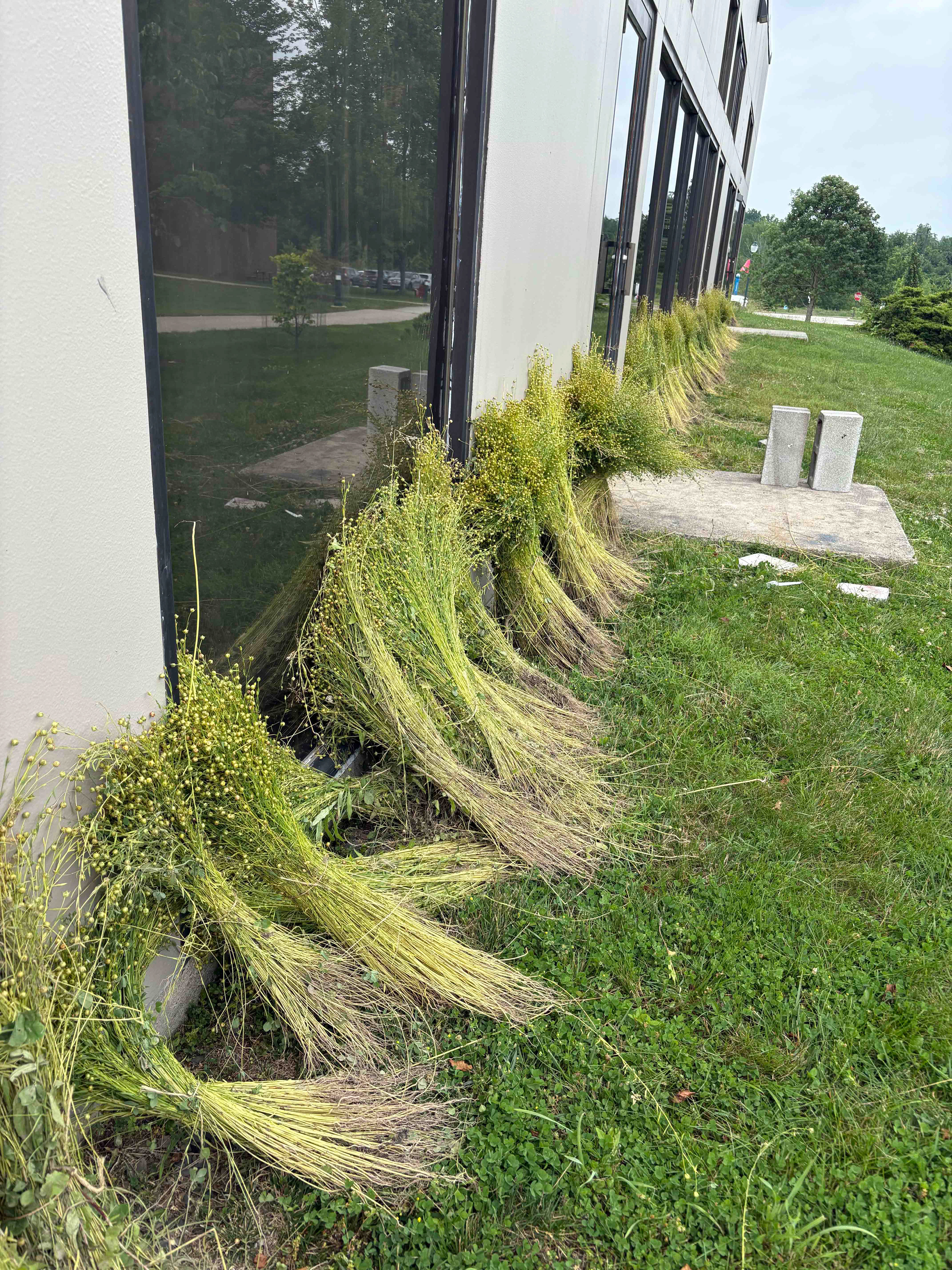 In the spring and summer of 2025 Tyler Architecture students and faculty, in a multi-disciplinary collaboration with horticulture, engineering, city and regional planning and community development, and fibers and materials, developed a new biogenic building material made from flax, the latin term for which is "linum usitatissimum." What began as a study into carbon positive, biogenic building materials, grew into an investigation at a range of scales from the planetary, to urban, to material. This investigation of this new material, "flaxcrete," culiminated in the installation of a "bird blind" at Temple's Ambler Campus and an exhibition at Main Campus.